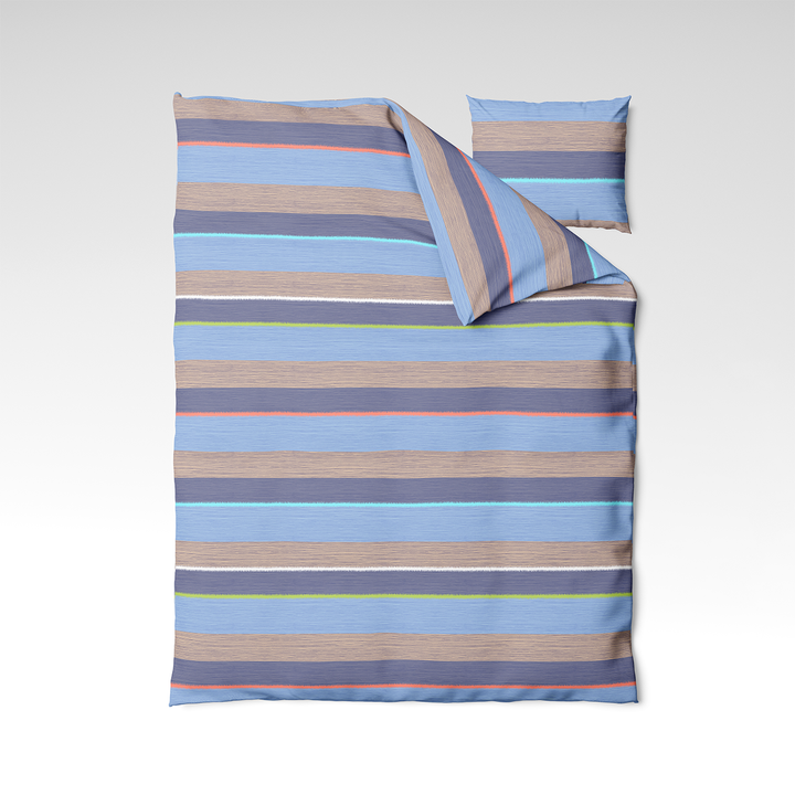 🌊 Rannikumeeleolud – energiline ja värskendav disain, inspireeritud mere äärest. Taeva sinised, liivakarva, korall- ja rohelised horisontaalsed triibud meenutavad päikesepaistelist suvepäeva rannikul. See disain toob värve, elavust ja vabaduse tunnet igasse magamistuppa.